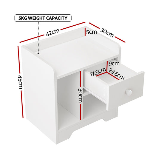 Artiss Bedside Table 1 Drawer with Shelf - EMMA White